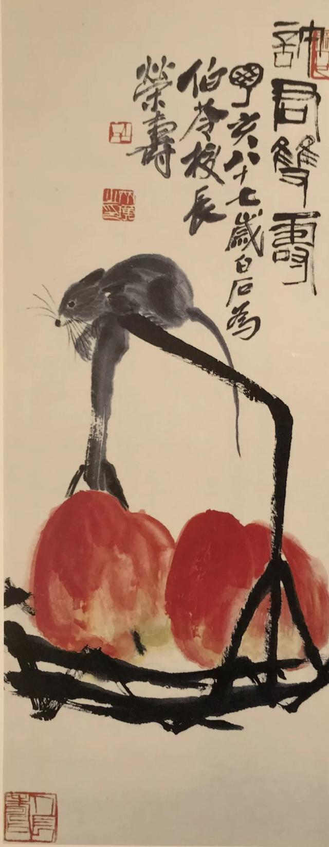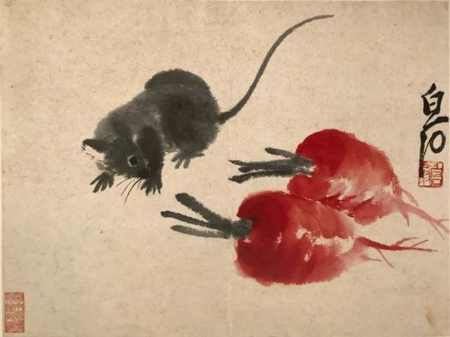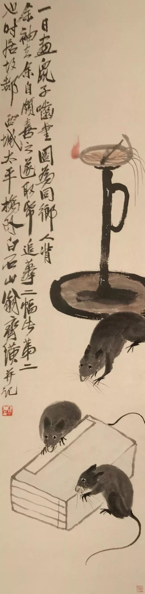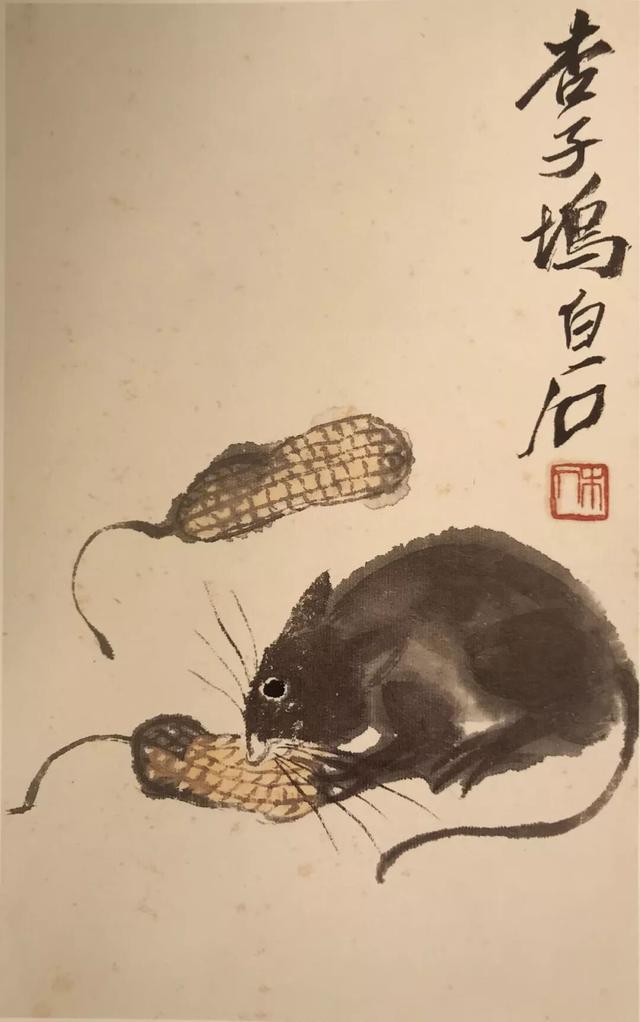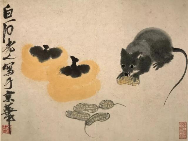 (注:齐白石画鼠题材作品现存近百幅,笔下老鼠形象累计上千只,是中国美术史上画鼠最多、最知名的画家之一。)