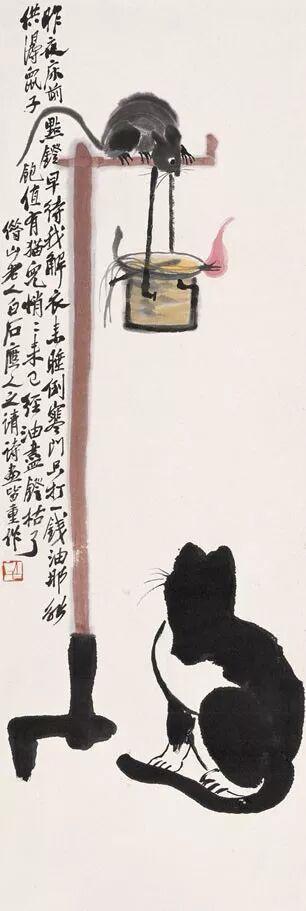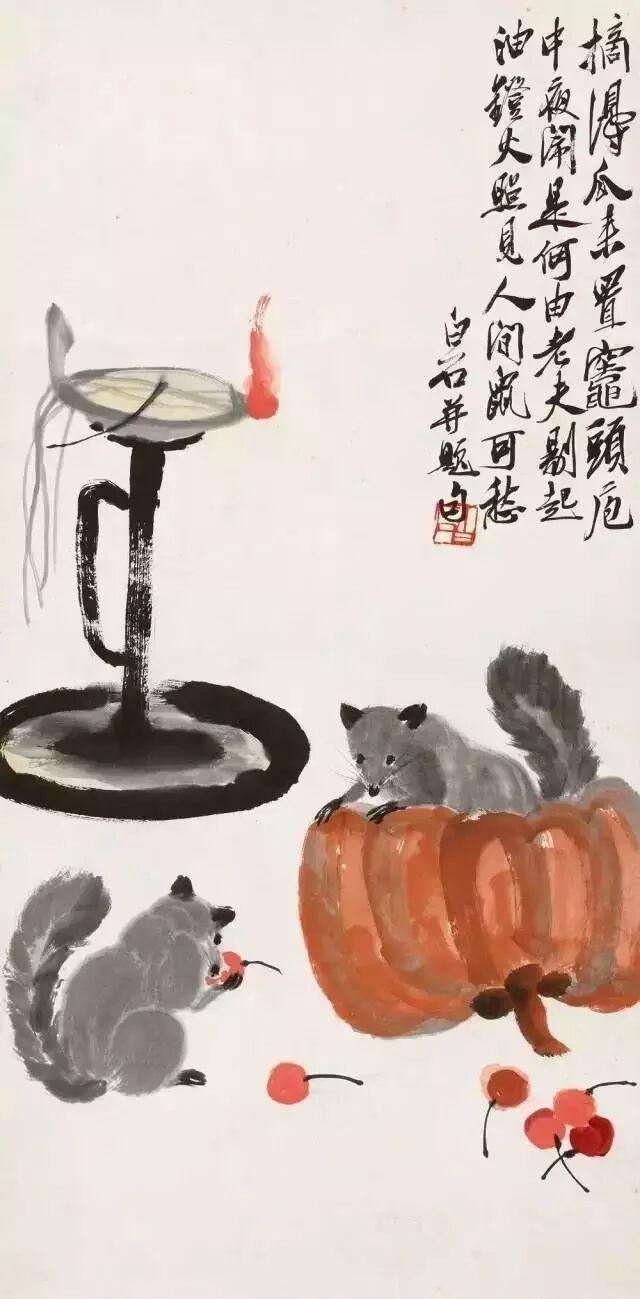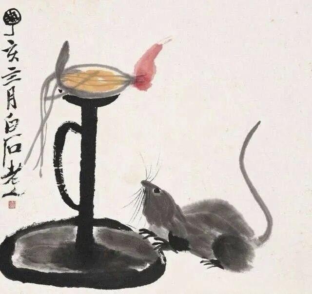 齐白石画得最多的,还要数“老鼠偷油”。