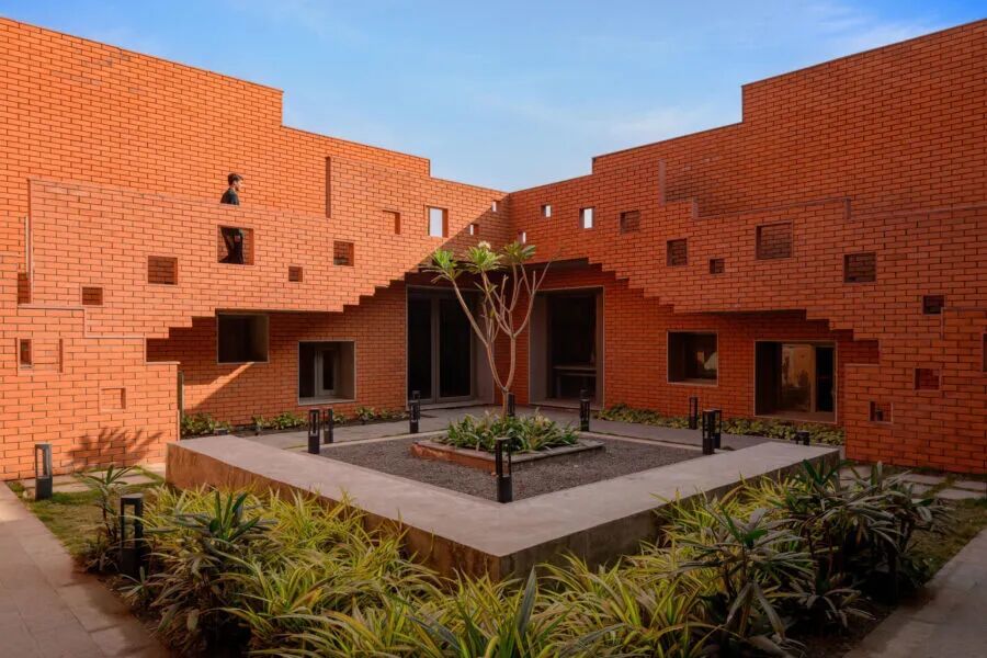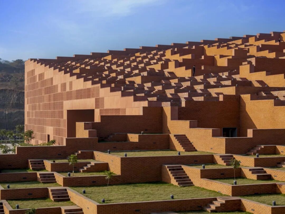 设计这栋建筑的是印度本土工作室Sanjay Puri Architects,灵感来自印度传统的“阶梯井”。